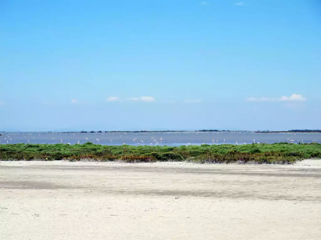 By the side of a small natural canal and the salt marshes. Comfortable villa "Orée des Salines". On the outskirts, in the residential district, 1.9 km from the sea. Private: property 550 m2 (fenced), swimming pool (8 x 4 m, depth 100 - 170 cm, seasonal availability: 15.May. - 15.Oct.) with internal staircase and salt-electrolysis pool-cleaning system. Outdoor shower, pool house with fridge, terrace (100 m2), barbecue. Shop 1 km, supermarket 1 km, bus stop "HLM" 1.2 km, railway station 2.4 km, sandy beach "Nord" 1.9 km, outdoor swimming pool 2 km, thermal baths "Thalazur Port Camargue" 4.7 km. Golf course (42 hole) 10 km, riding stable 1.4 km. Nearby attractions: Casino Flamingo 550 m, Seacquarium 1.9 km, Arènes Grau du Roi 3.1 km, Aigues Mortes 6 km, Grande Motte 12 km, Nîmes 49 km. Hiking paths: P13. Please note: the keys‘ handover takes place by the agency Interhome in Port Camargue, 2 km. Airfield 24 km from the property. . Landscape garden, 250 m2, below the house, access via 5 steps. Lovely view of the salt marshes and the Camargue.6-room villa 142 m2 on 2 levels. Beautiful furnishings: living/dining room 40 m2 with TV and DVD. 1 room with 1 french bed (160 cm, length 200 cm). 1 room with 2 beds (90 cm, length 190 cm). Open kitchen (4 hot plates, oven, dishwasher, microwave, freezer) with hatch. Bath/shower, sep. WC. Upper floor: 2 rooms, each room with 1 french bed (160 cm, length 200 cm). 1 room with 1 x 2 bunk beds (90 cm, length 190 cm). Shower/WC. Heating. Terrace 100 m2, south-east facing position. Terrace furniture, deck chairs (8). Beautiful view. Facilities: washing machine. Internet (WiFi, free). Parking, garage. Please note: maximum 1 pet/ dog allowed. Smoke alarm.