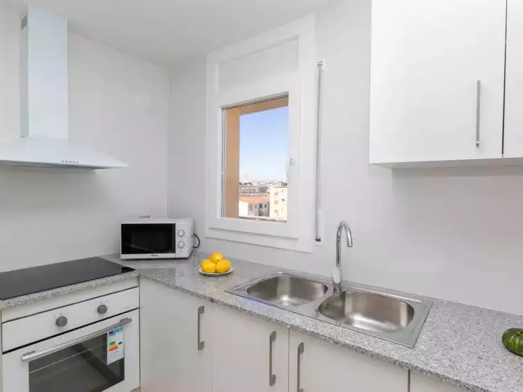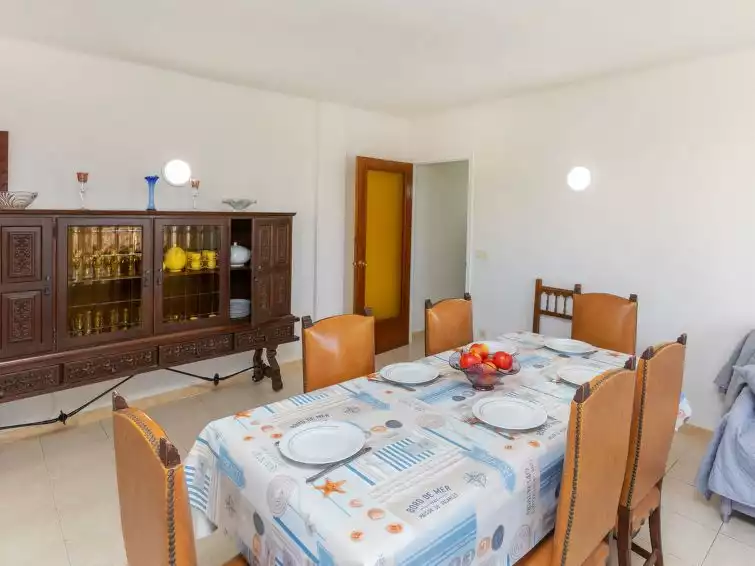Riells: Apartment block "Policar", 3 storeys. In the resort 1.7 km from the centre of L'Escala, 150 m from the sea, 150 m from the beach, on a main road. Single garage (extra) at 300 m. Supermarket 150 m, restaurant 50 m, internet café 950 m, pedestrian zone 150 m, bicycle rental 950 m, bus stop 3.7 km, sandy beach "Riells" 150 m, diving center 700 m. Sports harbour 700 m, surf school 250 m, sailing school, riding stable 3.8 km, children's playground 900 m. Nearby attractions: Ruinas Greco Romanas d'Empùries 3.2 km, Skydive Empuriabrava 23 km, Parque acuatico AQUABRAVA Roses 27 km, Casino-Festival de Perelada 30 km, Museo Dalí Figueres 26 km, Pitch and Putt Gualta - 18 hoyos 15 km. Please note: no lift."Policar", 3-room apartment 58 m2 on 3rd floor. Practical and comfortable furnishings: living/dining room with digital TV, flat screen and air conditioning. Exit to the terrace. 1 room with 2 beds (90 cm, length 190 cm). Exit to the balcony. 1 room with 1 french bed (135 cm, length 190 cm). Kitchen (4 hot plates, oven, 4 ceramic glass hob hotplates, microwave, electric coffee machine). Shower/WC. Boiler (80 litres). No heating option. Terrace 9 m2. Balcony furniture. Partial view of the sea. Facilities: washing machine, iron. Internet (WiFi, free). Parking (extra, roofed). Please note: non-smokers only. HUTG-066952 // Reg. Nr.: ESFCTU00001701000009927000000000000000000HUTG-066952-600
