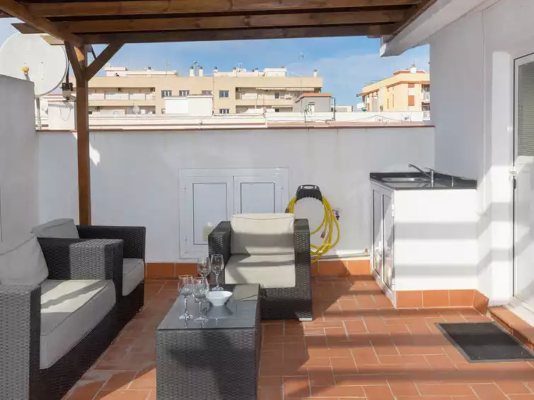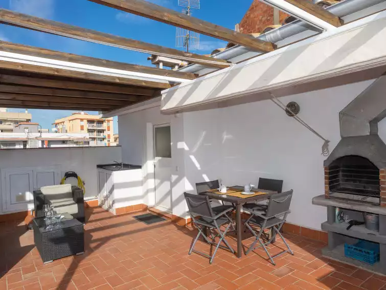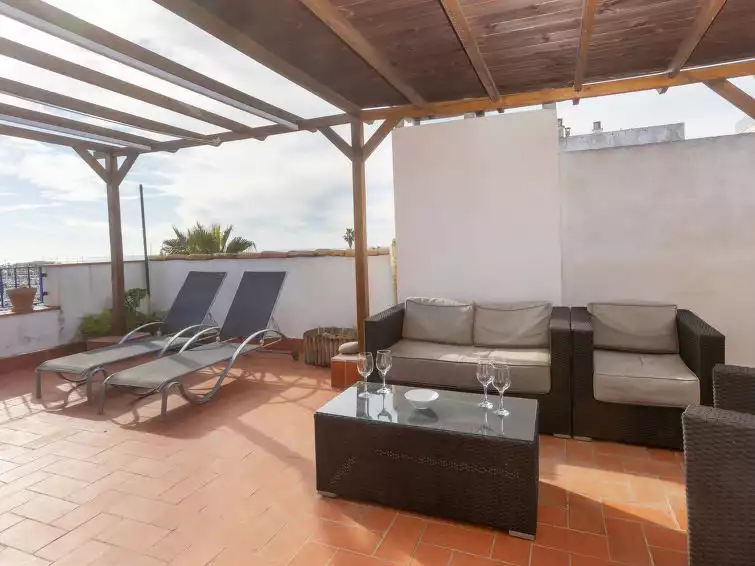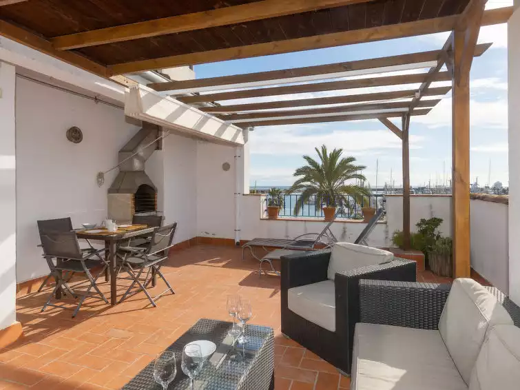 Cosy, comfortable apartment block. 20 m from the sea, 270 m from the beach. In the house: lift. Parking (for 2 cars), public parking on the road. Supermarket 220 m, restaurant, bar 5 m, pedestrian zone 20 m, bus stop "L2 P23 Pg. Marítim - Gas" 80 m, railway station "Vilanova y la Geltru" 800 m. Sports harbour, marina 20 m. Nearby attractions: Barcelona 46 km, Sitges 8 km, Tarragona 54 km, Port Aventura 65 km. The owner does not accept any youth groups. Neighbourhood highly sensitive to noise. Quietness and good behaviour expected."Port Vilanova", 4-room apartment 73 m2. Practical and modern furnishings: living/dining room with dining table and gas heating. Exit to the balcony. 1 room with 1 french bed (160 cm, length 200 cm), bath/WC, gas heating and air conditioning. 2 rooms, each room with 1 bed (90 cm, length 190 cm), gas heating. Open kitchen (oven, dishwasher, 2 induction hot plates, toaster, microwave, electric coffee machine). Shower/WC. Large terrace. Terrace furniture, barbecue. View of the port. Facilities: washing machine, iron, hair dryer. Internet (WiFi, free). Garage (2 cars). HUTB-015010 // Reg. Nr.: ESFCTU00000816800066301300000000000000000HUTB-0150105