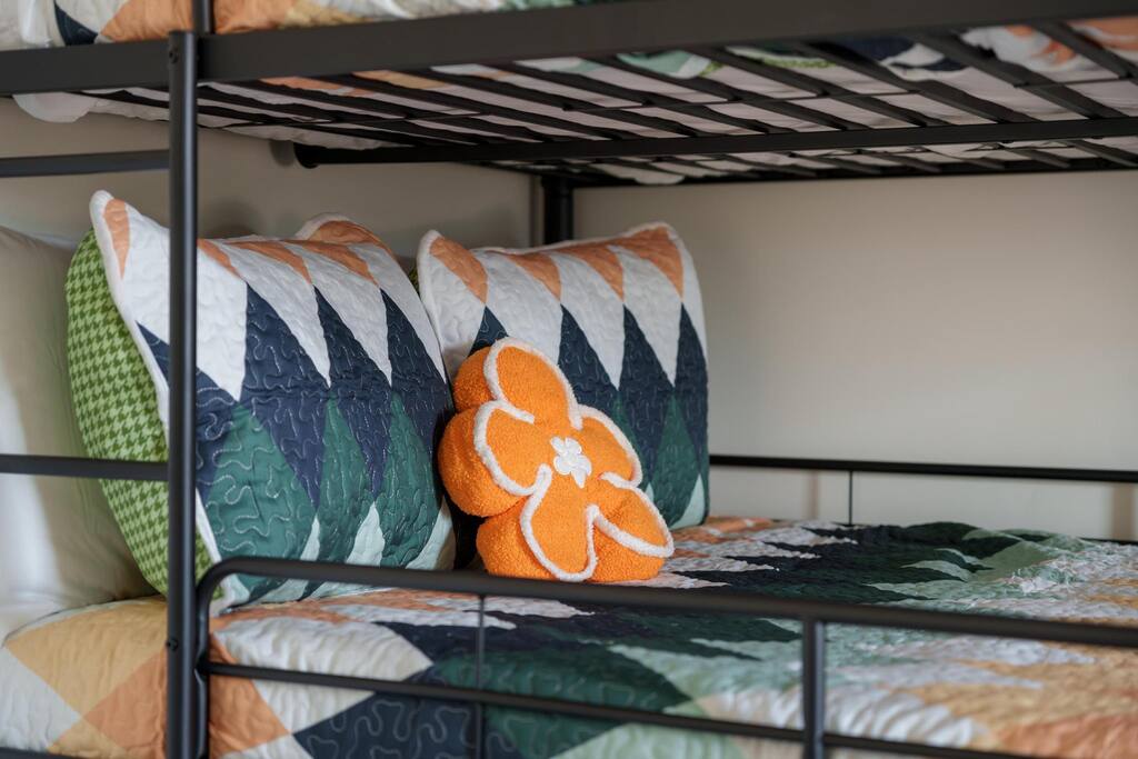 - Bunk Room: With three triple bunks, each featuring full-sized beds, this room comfortably sleeps up to 18 guests. Perfect for large groups or kids. The bunk room also includes a closet with a washer and dryer for added convenience. A full bathroom with a tub is located right across the hall.