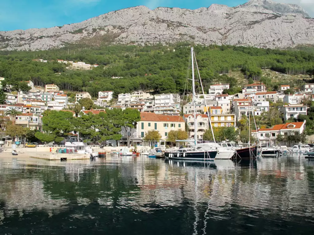 Apartment house "Rudez". 250 m from the centre of Gradac, 15 km from the centre of Ploče, 40 km from the centre of Makarska, on a slope, 250 m from the sea, 350 m from the beach. For shared use: property 400 m2, trees. Barbecue. In the house: internet access. Parking on the premises. Supermarket 250 m, restaurant 350 m, bus stop 600 m, pebble beach 350 m.2-room apartment 50 m2 on 2nd floor. Living/dining room with 1 sofabed and satellite TV (flat screen), air conditioning. Exit to the balcony. 1 room with 1 bed and 1 double bed. Kitchen (1 hot plate, oven, 3 gas rings, toaster, kettle, freezer, electric coffee machine). Bath/WC. No heating option. Balcony. Balcony furniture. View of the sea. Facilities: Internet (WiFi, free). Parking (1 car). Maximum 1 pet/ dog allowed.