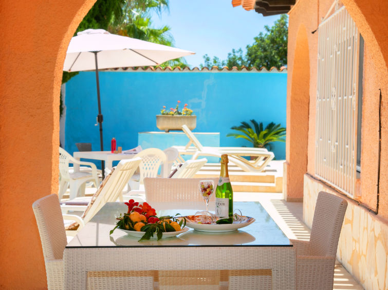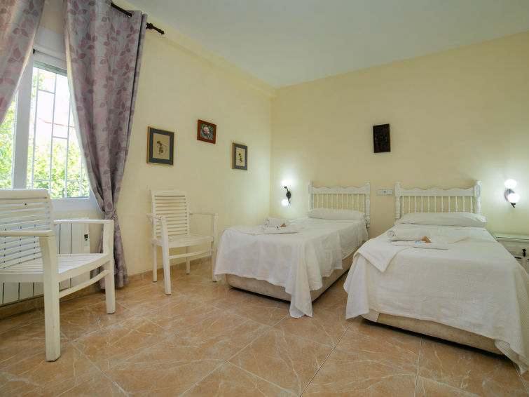 Playa Albir: Very large, very cosy, comfortable house "Sandra". In the resort 600 m from the centre of Albir, in a sunny position, 800 m from the sea, 800 m from the beach, in a cul-de-sac. Private: property 800 m2 (fenced), large garden with wildlife garden, orchard, swimming pool angular (9 x 4 m, depth 150 - 230 cm, seasonal availability: 01.Jan. - 31.Dec.) with internal staircase. Outdoor shower, arbour, pergola, garden furniture, barbecue, parking (for 3 cars) on the premises. Shop, supermarket 300 m, shopping centre 400 m, restaurant, bar, café 300 m, bus stop "Albir" 800 m, railway station "Albir" 800 m, sandy beach "Benidorm" 8 km pebble beach "Albir" 800 m. Golf course (18 hole) 8 km, walking paths from the house 800 m. Nearby attractions: Benidorm Palace 8 km, Aqualandia 8 km, Mundomar 8 km, Terra Mitica 10 km, Terra Natura 10 km, Alicante 45 km. Please note: baby equipment on request. The owner does not accept any youth groups. Neighbourhood highly sensitive to noise. Quietness and good behaviour expected. Important for wheelchair users: Width of main door: 82 cm, interior doors 70 cm. Width of the corridor: minimum of 95 cm. Bathroom: 2.4 x 3.6 m. Swimming pool raised to 30 cm."Sandra", 4-room house 150 m2. Object suitable for 6 adults. Spacious and bright, simple and practical furnishings: living/dining room 27 m2 with digital TV, electric heating, air conditioning and forced-air heating. Exit to the garden, to the patio, to the swimming pool. 1 room 24 m2 with 1 french bed (160 cm, length 190 cm), bath/shower/bidet/WC, double hand-basin, digital TV, electric heating, air conditioning and forced-air heating. 1 room 18 m2 with 2 beds (90 cm, length 200 cm), electric heating. 1 room 15 m2 with 2 beds (90 cm, length 190 cm), electric heating and fan. Large kitchen 16 m2 (oven, dishwasher, 4 ceramic glass hob hotplates, toaster, kettle, microwave, freezer, grill, electric coffee machine) with dining table, electric heating. Exit to the garden, to the patio, to the swimming pool. Shower/bidet/WC, double hand-basin. Electric heating. Large terrace, large garden. Terrace furniture, barbecue, deck chairs (6). View of the swimming pool and the garden. Facilities: washing machine, iron, hair dryer. Internet (WiFi, free). Garage on the property (3 cars). The house is completely prepared for the winter. VT-411821-A // Reg. Nr.: ESFCTU00000303000006426600000000000000000VT-411821-A6,