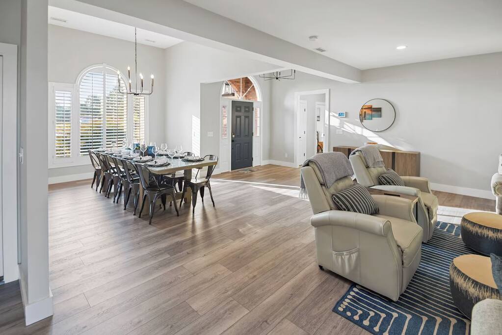 This beautifully renovated 6-bedroom, 5-bathroom waterfront home offers over 5,000 sq ft of stylish comfort and room to spread out. With beds to sleep up to 20 guests and outdoor furniture to accommodate all, it’s ideal for large groups or memorable family gatherings. The open-concept layout showcases sweeping views of the water and surrounding mountains, while every inch of the home has been thoughtfully updated for a modern, luxurious experience.