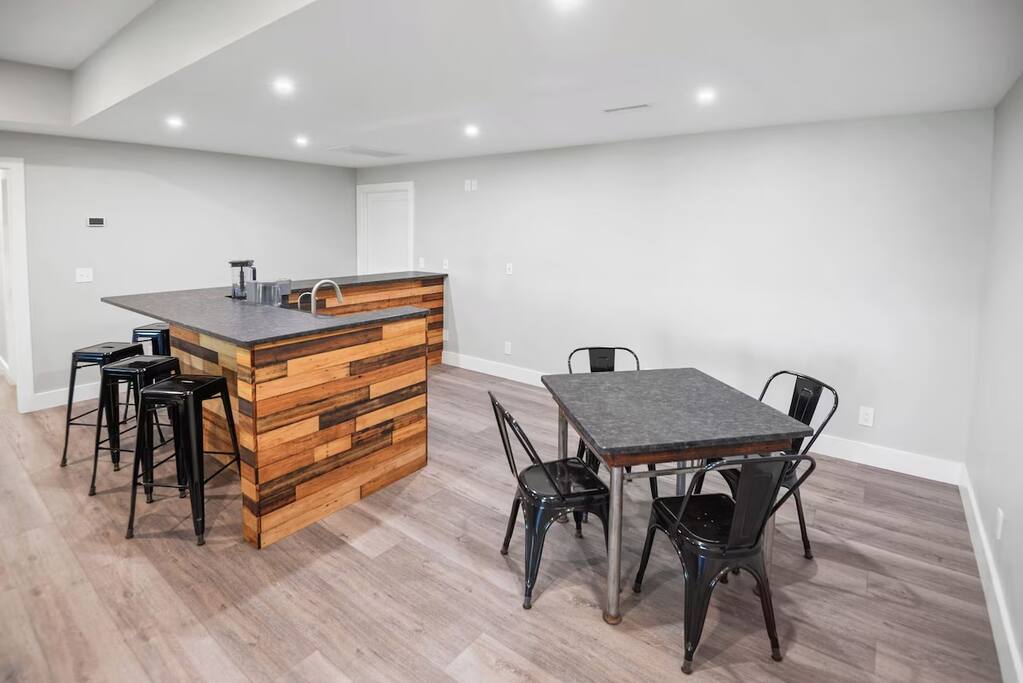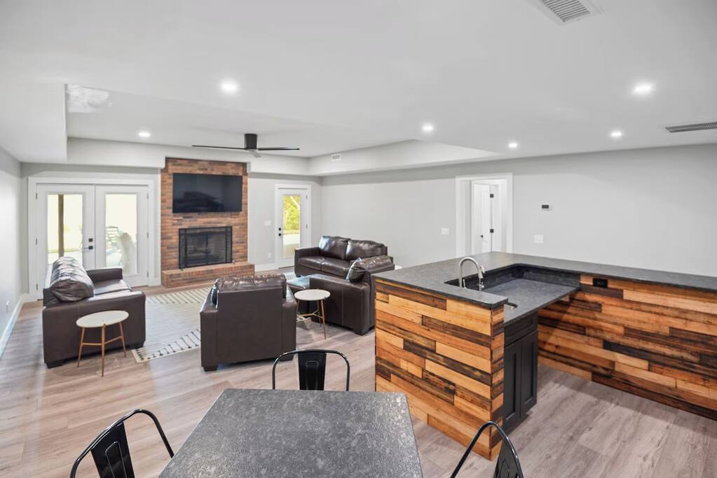 .☛ Living Room2: Cozy and modern with rich leather seating, a sleek fireplace, and a Smart TV. Connects to the game area and bar—perfect for evening relaxation.