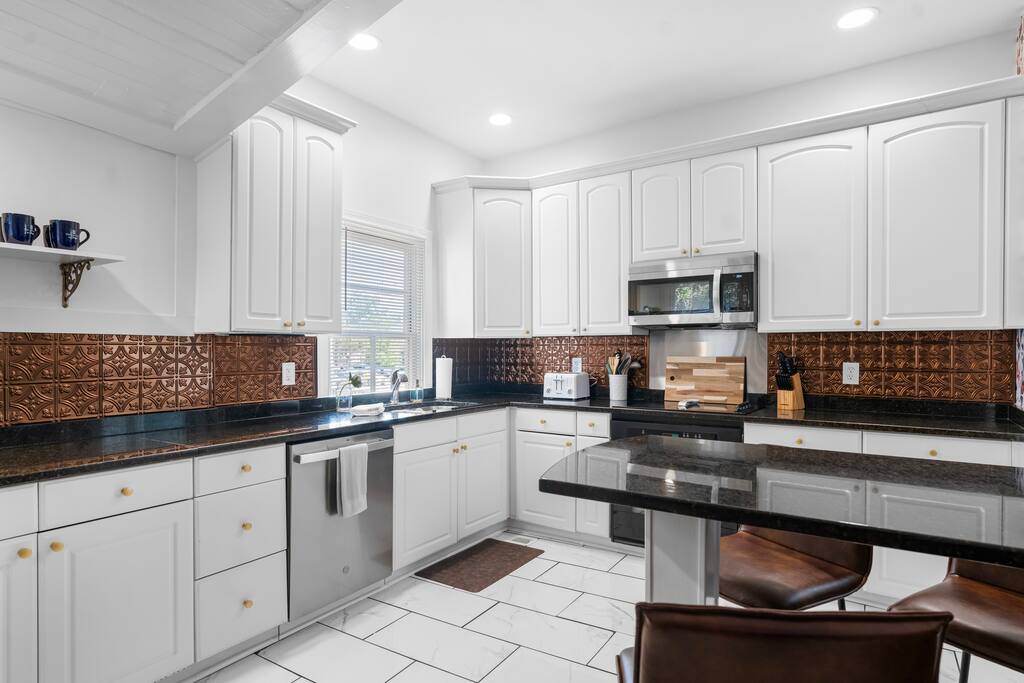 The kitchen features everything you need: full appliances, Keurig Duo (pods & carafe), basic spices, and kid-friendly dinnerware. Enjoy shared meals in the sunny dining area for 6, or grab coffee and tea at the breakfast counter (complimentary pods, creamers, and teas included).