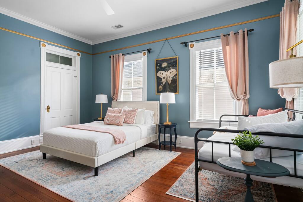 3rd Bedroom: Queen bed + twin daybed, private balcony with Forsyth Park views, ensuite bath with shower.