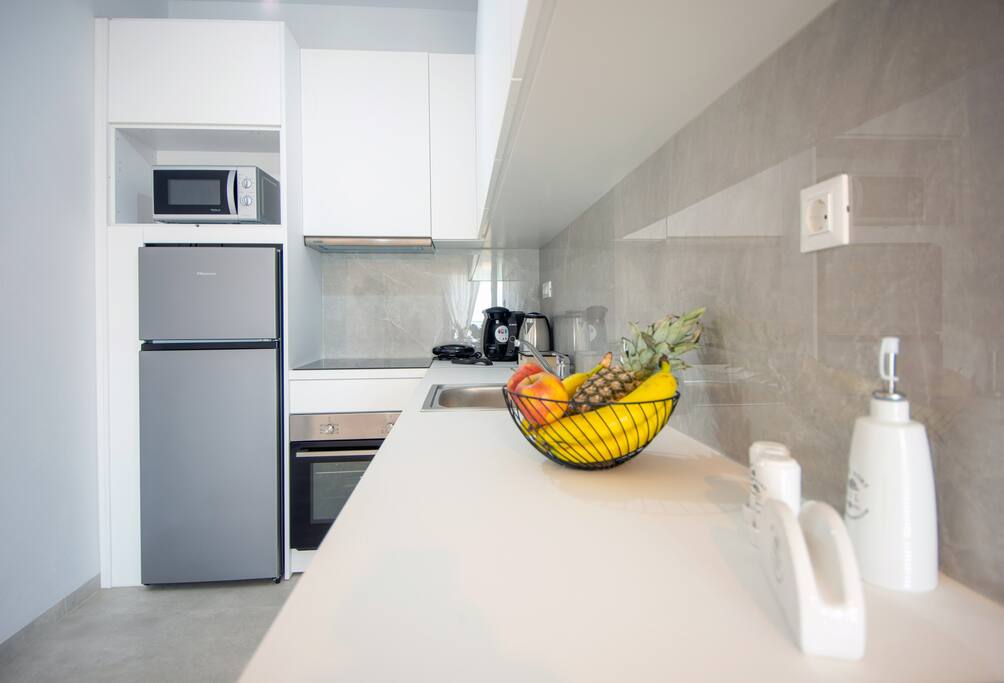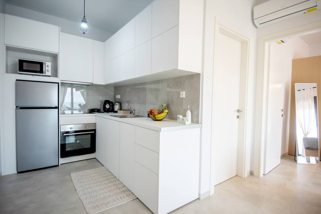 The fully equipped kitchen is a true highlight of Elounda Sunshine Place. It provides everything you need to prepare your own delicious meals, including a refrigerator, microwave, cooking basics, pots and pans, oil, salt, and pepper. You'll find a wide selection of dishes, silverware, bowls, chopsticks, plates, cups, and even wine glasses, ensuring that every dining experience is exceptional. Additionally, a hot water kettle, coffee maker, and toaster are available for your convenience.