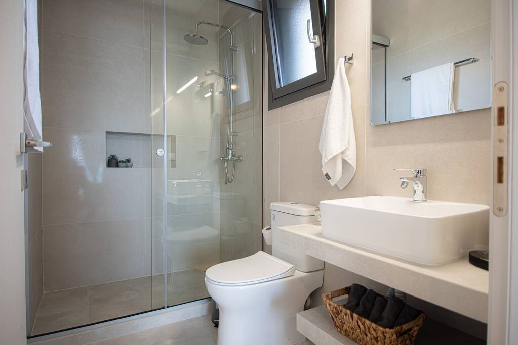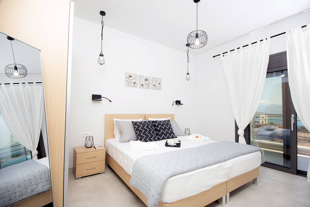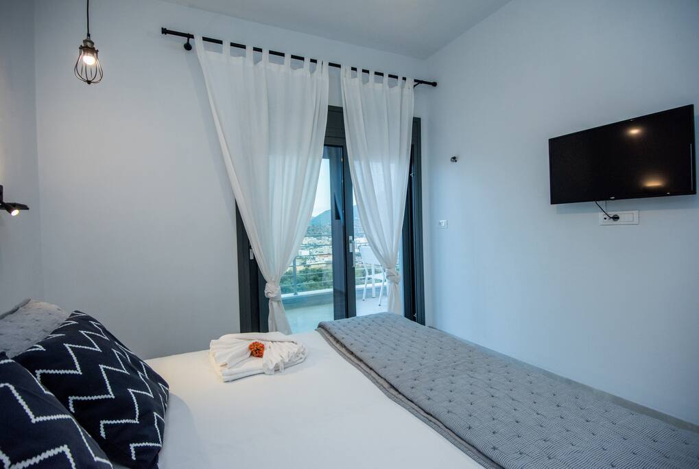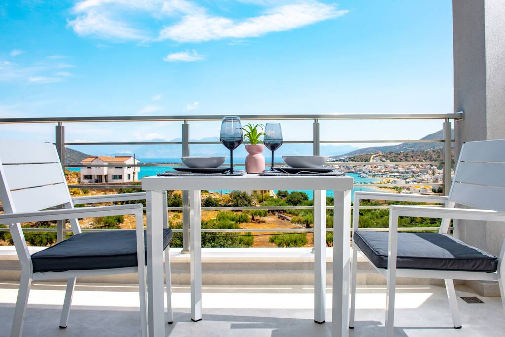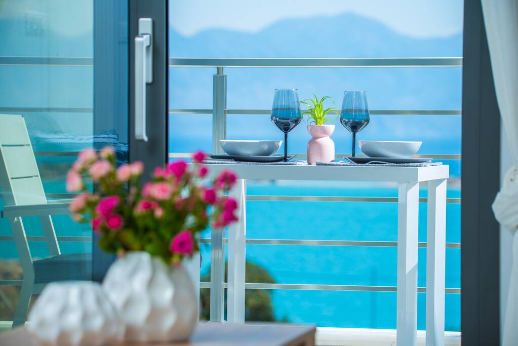 As you step outside onto the private balcony, you'll be greeted by stunning views of the bay, sea, pool, and mountains. This outdoor space is furnished with comfortable furniture, allowing you to soak up the Mediterranean sunshine while enjoying a cup of coffee or savoring a glass of wine. It's the perfect spot to unwind and take in the breathtaking surroundings.