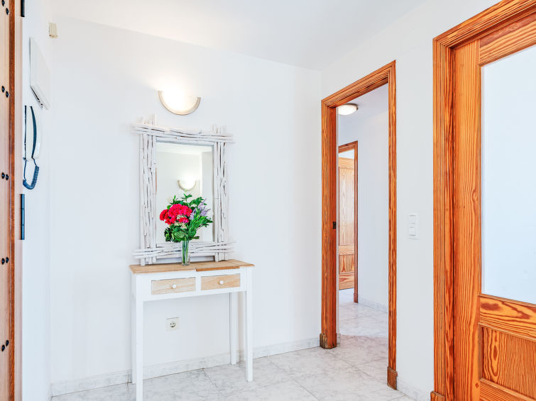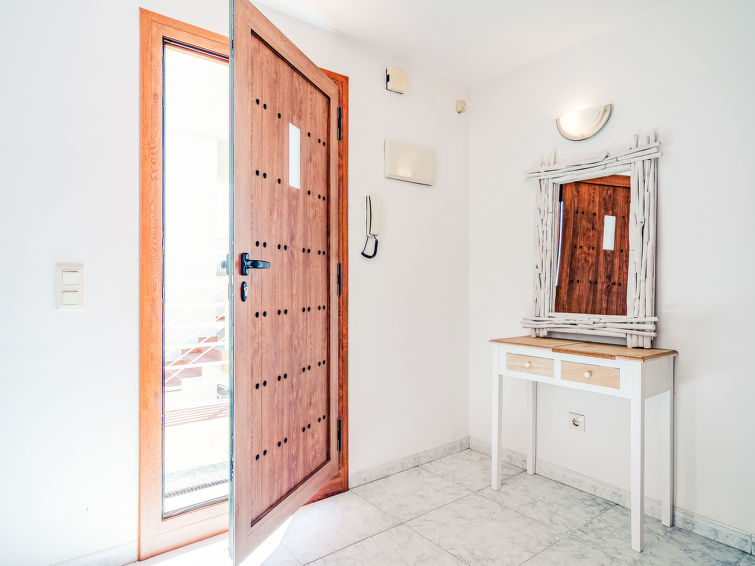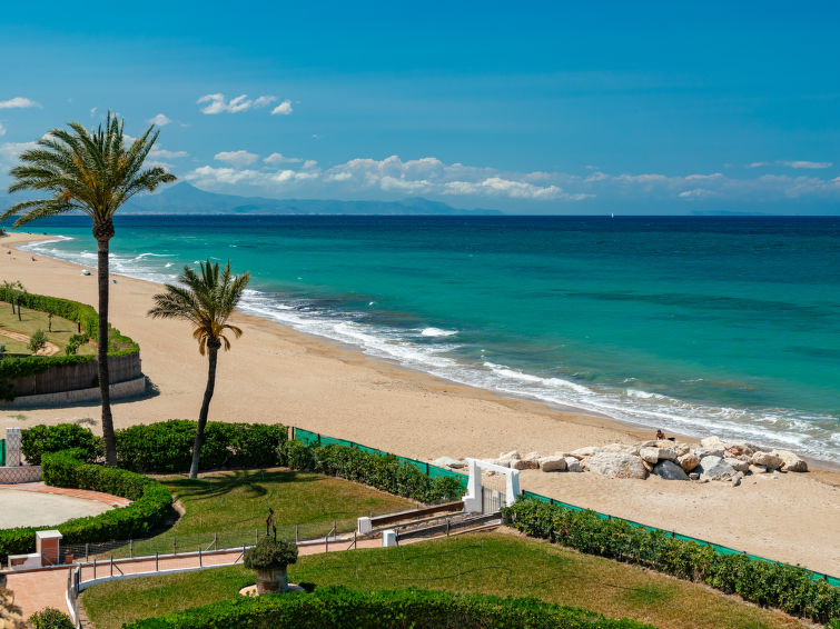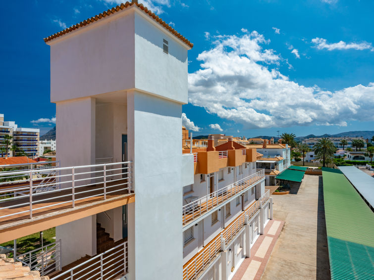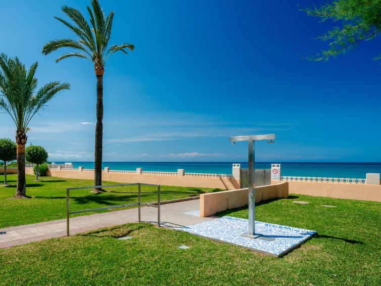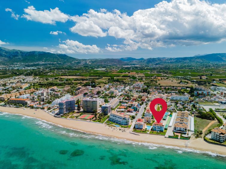Les Marines 4 km from Dénia: Apartment block "Talima". In the district Les Marines, 50 m from the sea, 15 m from the beach, direct access to the beach, in a cul-de-sac. For shared use: garden (fenced) with lawn, swimming pool (16 x 8 m, depth 75 - 250 cm, seasonal availability: 01.Jan. - 31.Dec.). Outdoor shower. Supermarket 450 m, restaurant 200 m, bar, café, bus stop 450 m, railway station 6.4 km, ferry 5.4 km, sandy beach 30 m."Talima", 3-room penthouse 83 m2. Spacious and bright, renovated in 2025, comfortable and stylish furnishings: living/dining room with satellite TV, digital TV and international TV channels (flat screen), air conditioning and forced-air heating. Exit to the terrace. 1 room with 2 beds (90 cm). 1 room with 1 french bed, air conditioning and forced-air heating. Exit to the terrace. Large kitchen (oven, dishwasher, 4 ceramic glass hob hotplates, microwave, freezer, electric coffee machine). 2 baths/WC. Marvellous panoramic view of the sea. Facilities: washing machine, children's high chair, baby cot. Internet (WiFi, free). Parking space n 17 (roofed). Please note: non-smoking house. AT-451067-A // Reg. Nr.: ESFCTU00000304500044989000000000000000000AT-451067-A5