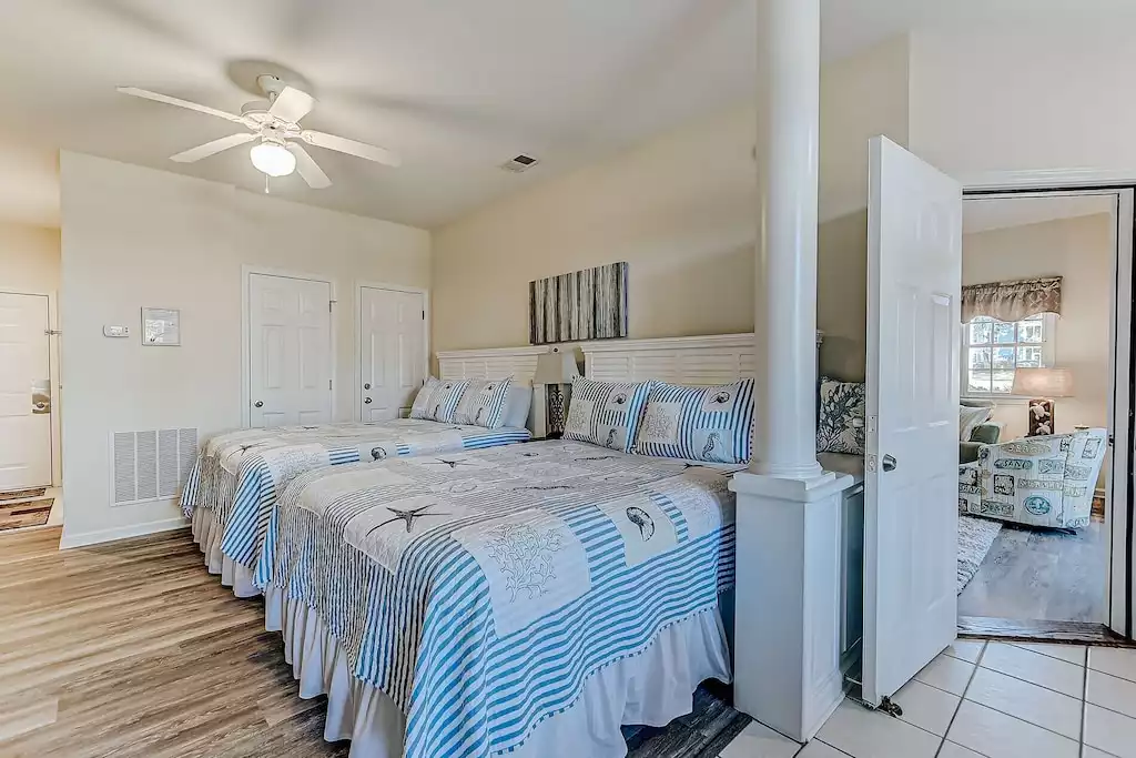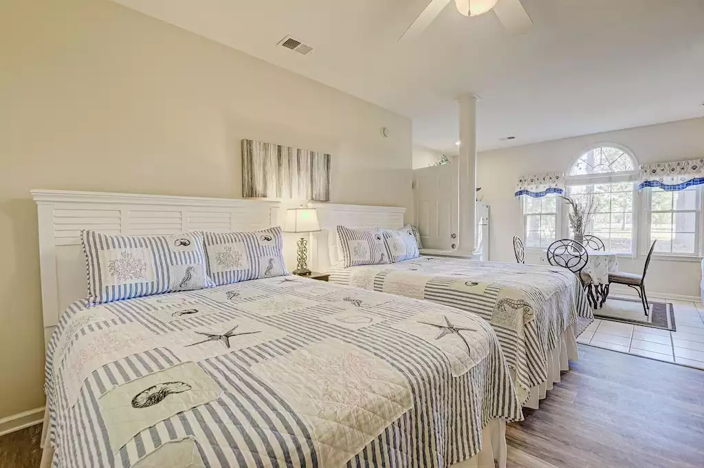 NO ADDITIONAL Owner Fees! Full stocked kitchen with all necessities. Enjoy a 5% discount for weekly rental. Compare the bottom line! Whether you are planning a golf outing, a quiet getaway, a couples retreat or a fun-filled family vacation look no further! This spacious 2 bed 2 bath ground floor unit is in Sea Trail, Champions sleeps 7. Don't need this much space? Message me for reduced pricing when booking the Villa only which has a full kitchen, bath, king bed and a convertible twin bed ottoman.