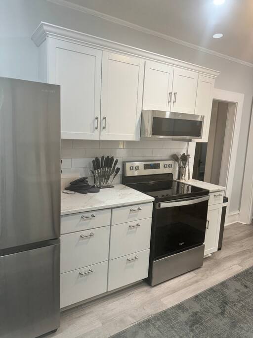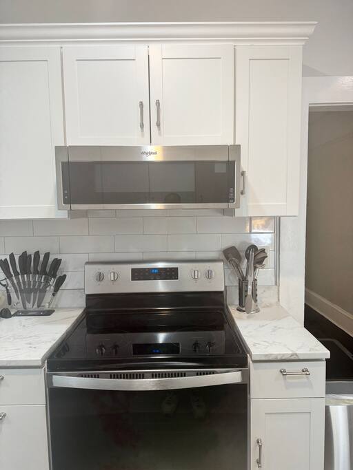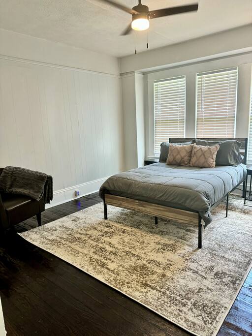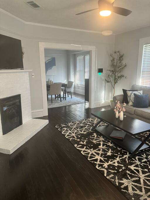 This spacious home features 3 bedrooms and 2 full bathrooms, perfect for families or small groups. Every bedroom features its own TV for extra comfort and entertainment. Located just a 2-3 minute walk from downtown, you'll have easy access to local restaurants, shops, and attractions. Grocery stores are conveniently just a 5-minute drive away, making it an ideal spot for both short stays and extended visits.