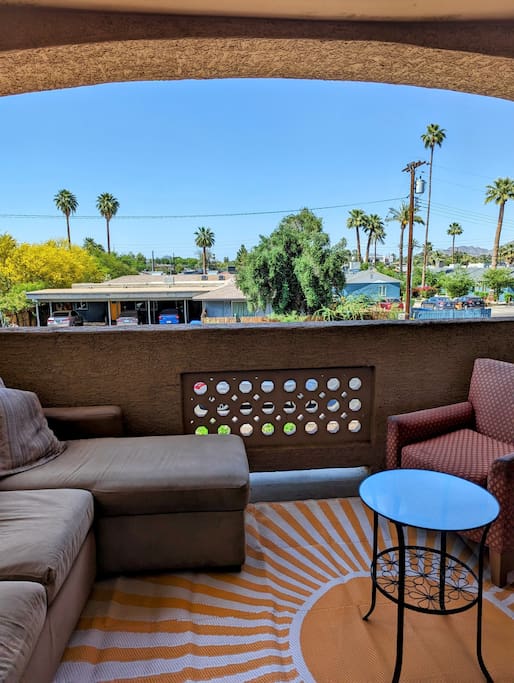 Built in 1960 & regularly updated this mid-Century modern condo oozes style & reflects our investment in a greener earth: natural gas, foam injected block walls, custom steel gates, stained concrete floors, desert plants, artificial grass & modern fixtures have reduced water 600,644 gal/yr! Condo features a new kitchen, reclaimed quartz counter tops & back splash, reclaimed exotic stone island, industrial skylights & LED down lighting. Walk or 2 minute Uber ride to wonderful restaurants & bars.We literally tore this place apart, down to the studs, starting in September 2018, completing it three months later. Everything was replaced or freshened in some manner. New kitchen cabinets and new exotic stone island and quartz countertops and backsplash, new bathroom vanity and shower etc... Much of the furniture is from my personal collection (lightly used) as is much of the art. We intentionally went a bit quirky and vintage with the living room furniture. You'll either love it or hate it but you'll agree that nothing is vanilla in this home. While I'm proud of the place my goal is to serve my guests so please do not hesitate to share with me things you don't love or would like to see done differently. Oh, and the courtyard wall mural (sunflowers) was completed and recently "freshened" by a artist friend of ours. We hope you love it!
