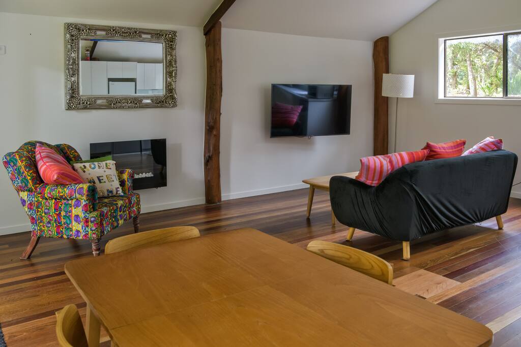 THE CREEK HOUSE is a rustic cottage perched meters from the soothing sounds of Snows Creek, with an unforgettable outdoor shower. The cottage includes a romantic electric fireplace, a library, and a true cook's kitchen, also with an electric BBQ on the deck. It's kept comfortable in all seasons with two reverse-cycle air conditioners (lounge and bedroom).