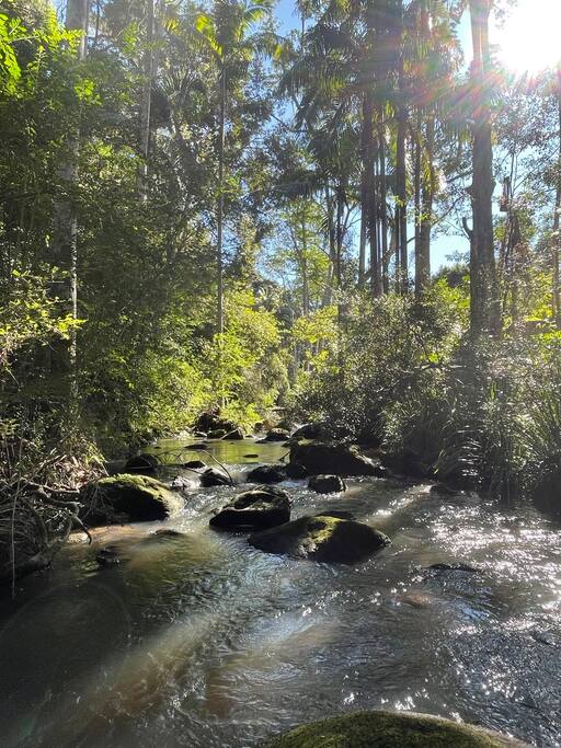 Welcome to The Duo, where our entire hinterland sanctuary is yours. This booking combines our two beloved homes: the sun-drenched Pool House with its sparkling private pool, and the rustic Creek House with its magical outdoor shower. Gather by the pool, relax by the creek, cook and share meals, knowing you each have a private, fully-equipped home to retreat to. It’s the perfect blend of connection and privacy for couples or friends holidaying together.
