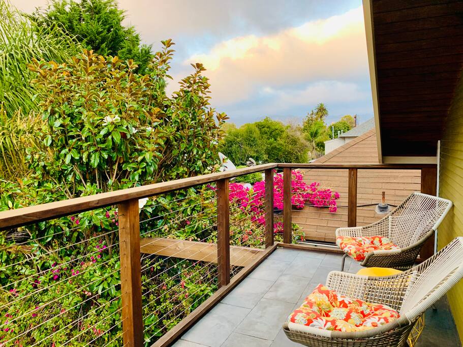 Sip your coffee and catch the sunset on one of our two roof - top terraces — the front one is overlooking the street, the back one -overlooking the garden & koi fish pond and Berkeley hills.