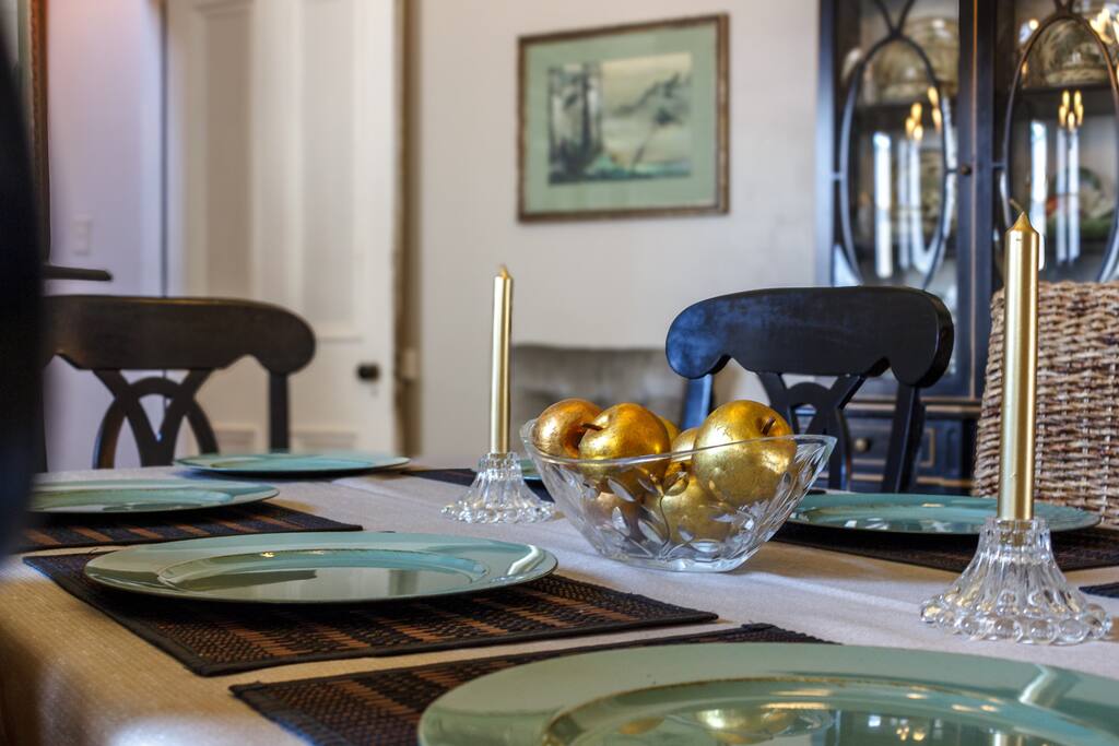 Step into your welcoming kitchen and dining area. The kitchen is equipped with all your basic cooking amenities, making meal preparation a breeze. You'll also appreciate the convenience of a butler's pantry, perfect for storing extra supplies and keeping your kitchen organized. You will find an amazing formal dining area for a romantic evening, or eating with family and friends. Additionally, a waffle maker, steamer, NutriBullet, fondue pot, and Cuisinart chopper are available, adding versatility to your culinary experience.