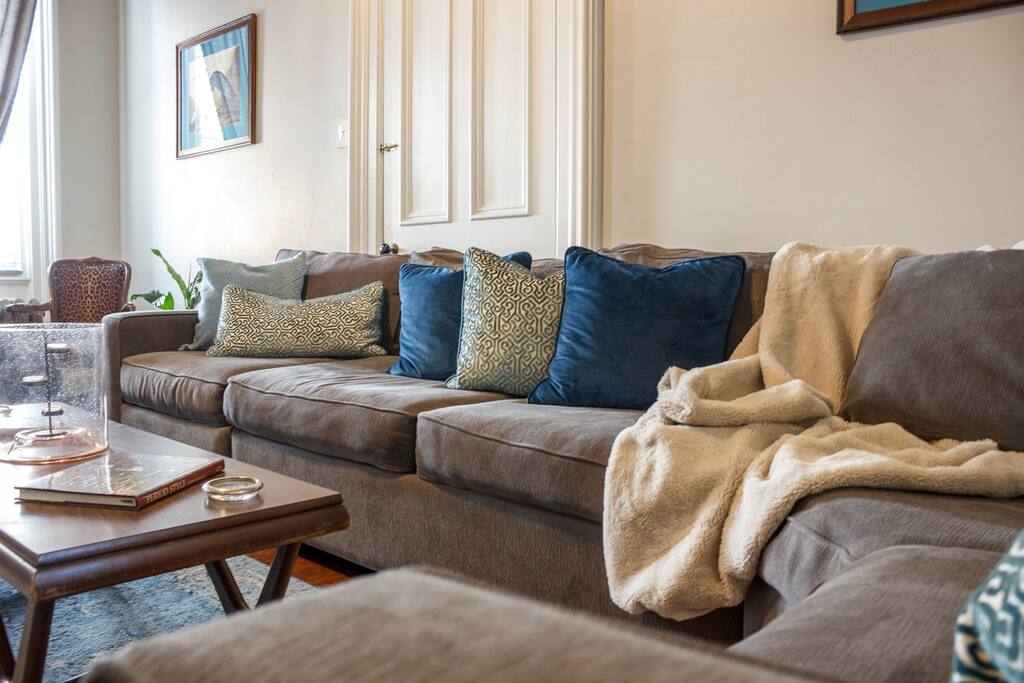 Step into your inviting living room, where comfort meets convenience. Enjoy plush seating around a 55-inch TV with Roku & Peacock for streaming. Our high-speed internet is perfect for productivity. Board games, a game console, and playing cards offer entertainment, and a variety of reading materials completes this inviting space, offering relaxation and enjoyment for everyone.