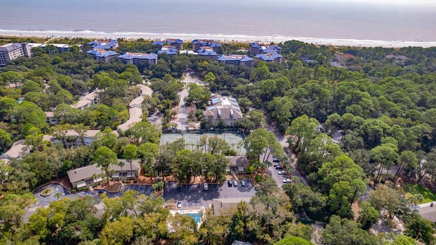 Nestled just across the road from the beach at the Adler Lane Beach Access, our location offers a quick and effortless stroll to the beach, complete with outdoor showers and public restrooms. If you're familiar with the South Forest Beach area, you'll find us right opposite the Marriott Grande Ocean Club, a well-regarded spot on Hilton Head Island. Many consider this to be one of the island's prime locations, a hidden treasure where you're mere steps away from the beach's Tiki hut and a short walk from the shops and restaurants at Coligny in one direction, and less than a mile from the Sea Pines Entrance in the other.