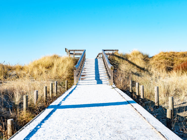 Comfortable apartment house. In the resort 400 m from the centre of Norddeich, in a central position, 350 m from the sea, 500 m from the beach. In the house: washing machine (extra), tumble dryer (extra). Supermarket 1.6 km, restaurant 300 m, bakery, café 400 m, bus stop "Ocean Wave" 550 m, railway station "Norddeich Mole" 1.9 km, ferry 1.8 km, sandy beach 500 m, outdoor swimming pool 14 km, indoor swimming pool 600 m. Golf course (18 hole) 8 km, surf school 500 m, tennis 2.3 km, minigolf 600 m."Witthuus-Juist", 3-room apartment 52 m2, on the ground floor. Comfortable and stylish furnishings: living/dining room 20 m2 with satellite TV (flat screen), DVD. Exit to the terrace. 1 room 9 m2 with 1 double bed (2 x 90 cm, length 200 cm). 1 room 7 m2 with 2 beds (90 cm, length 200 cm). Kitchenette (oven, dishwasher, 4 ceramic glass hob hotplates, toaster, kettle, microwave, electric coffee machine). Shower/WC. Underfloor heating. Terrace 16 m2, south-east facing position. Terrace furniture, barbecue. Facilities: children's high chair, hair dryer. Internet (WiFi, free). Parking at the house. Please note: non-smokers only. Beach chair on the terrace. Garden (fenced) for shared use. In case of reservation of extra beds, 1 double sofa bed (130 cm, 200 cm long ) is available in the lounge.