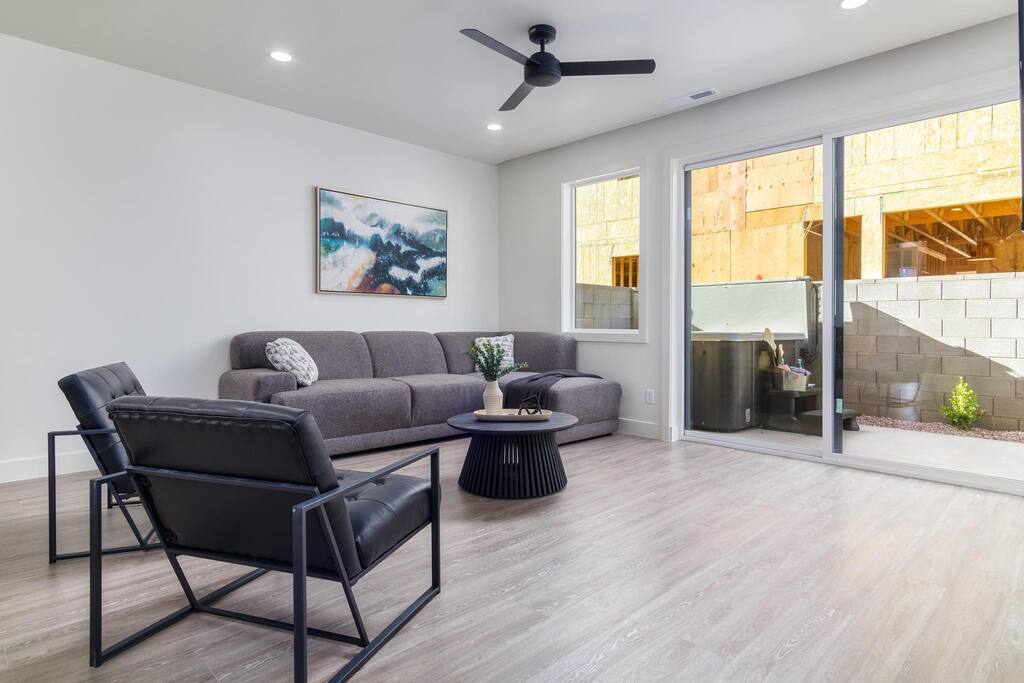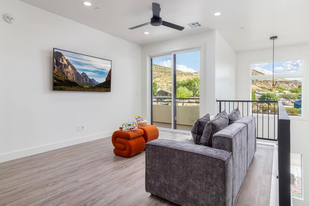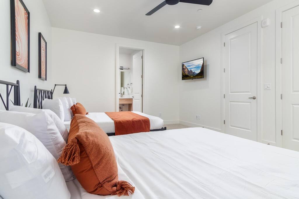 Discover the perfect Southern Utah escape! This luxurious 4-bedroom, 4.5-bath home sleeps 26, featuring two king suites, a double queen suite, and a bunk room with triple full bunks. Relax in the private spa, enjoy meals on the grill and outdoor dining area, and take in the views from the balcony. The spacious living areas include a full kitchen, breakfast bar, and TVs in every bedroom, living room, and loft. With a private garage and plenty of space, it’s the ideal getaway—book your stay today!