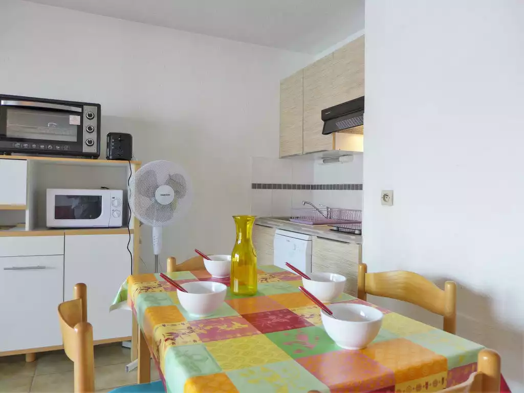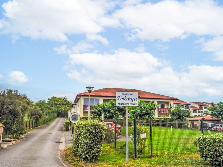 Bidart: Residence "Zirlinga". 100 m from the sea, 100 m from the beach, road to cross, direct access to the beach. For shared use: well-kept garden, swimming pool (15 x 7 m, depth 100 - 180 cm, seasonal availability: 01.Jul. - 30.Sep.). Children's pool, tennis. Grocery 800 m, restaurant 50 m, bar, bakery 1 km, 5 minute walk to the centre, bus stop 50 m, railway station "Guéthary" 4 km, sandy beach "Uhabia" 80 m. Golf course (9 hole) 4 km, surf school 80 m, tennis 10 m. Nearby attractions: Bidapark 200 m, Marché tous les samedis. Hiking paths: La Rhune 15 km. Please note: Additional accommodations can be booked. The residence is situated 250 m from the main road. Camping at 50 m.1-room studio 27 m2 on 1st floor. Simple and comfortable furnishings: living room with 1 double sofabed (1 x 140 cm, length 190 cm), TV (flat screen). Exit to the terrace. Sleeping alcove with 1 x 2 bunk beds (90 cm, length 190 cm). Kitchenette (oven, dishwasher, 2 ceramic glass hob hotplates, microwave, freezer, electric coffee machine). Shower, sep. WC. Electric heating. Terrace furniture. Facilities: washing machine, iron, hair dryer. Internet (WiFi, free). Parking space n 109. Please note: maximum 1 pet/ dog allowed. Smoke alarm. Instead of an enclosed bedroom, some sleeping areas are located in an open-plan area (gallery, alcove, etc.). 641250011992F