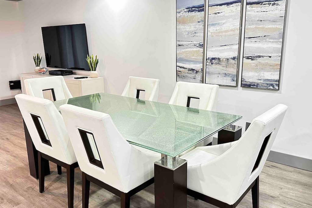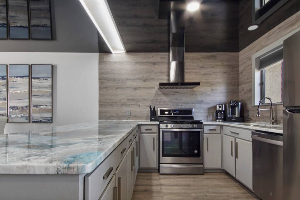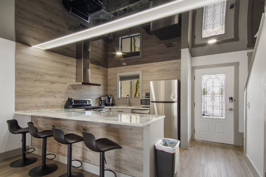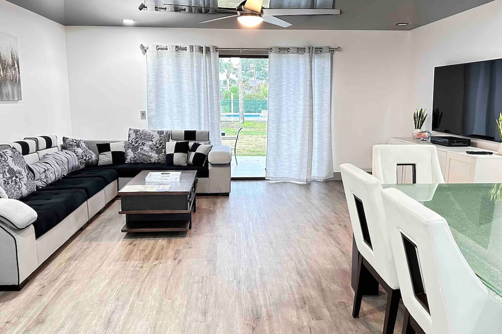 The bright living room is the heartbeat of the open-concept design area, offering a unique and upbeat setting to relax between exciting sightseeing and beach hopping.