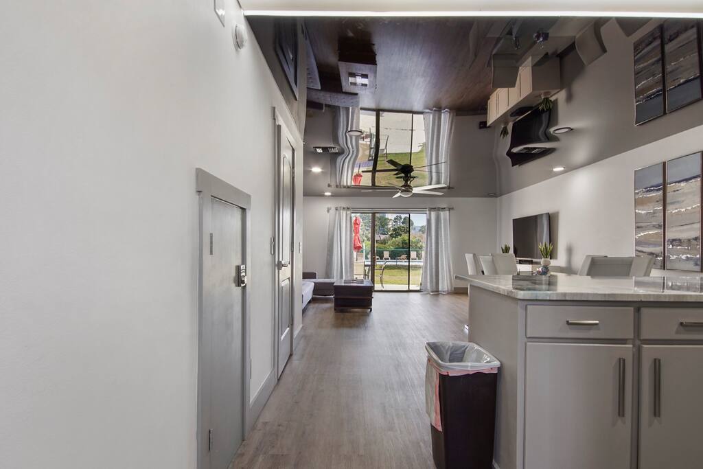 To ensure our guests' safety, we installed a Ring doorbell camera by the front door. Please check the photo section for more details.