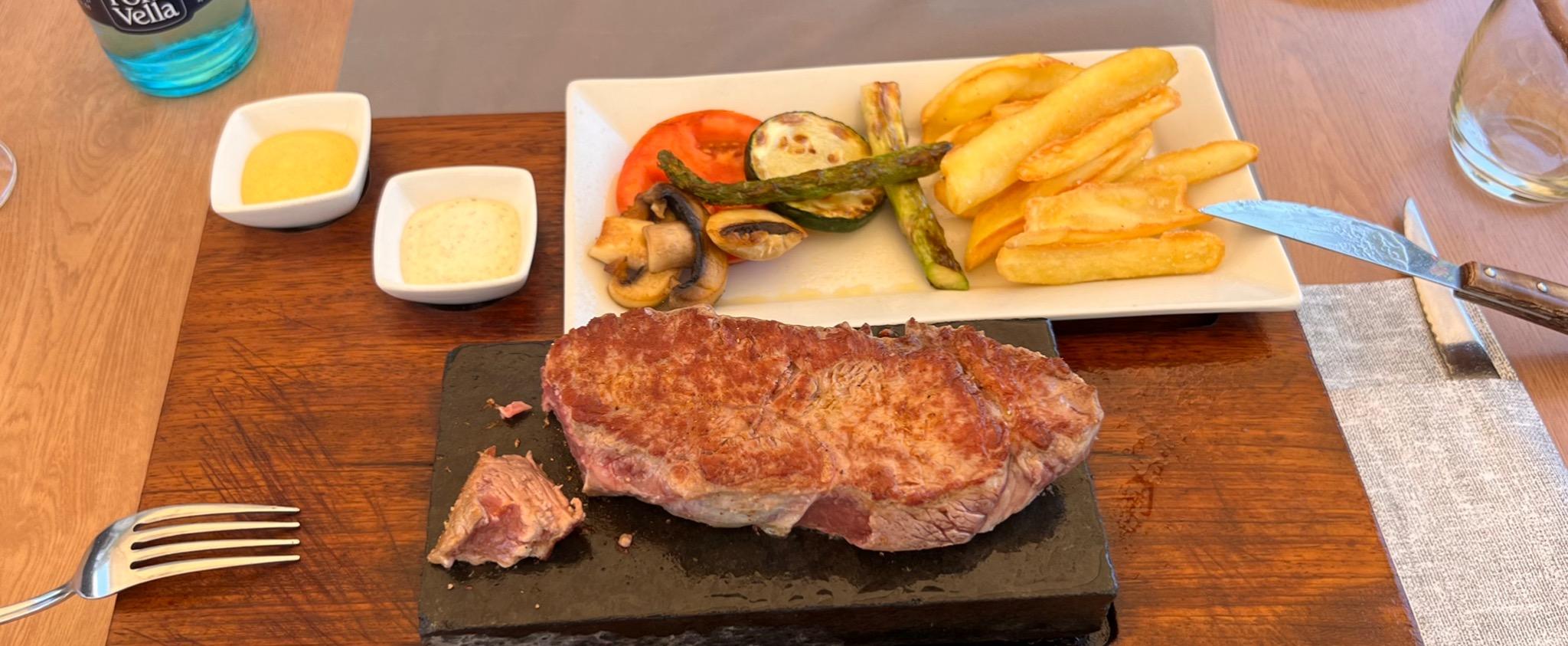 Nice elegant restaurant. Excellent steak and entrecot on a hot plate, meat and cheese fondues, and lots of other choices. Great and friendly service. Seatings in air-conditioned room or on a pleasant summer terrace. Reserving a table is recommended.