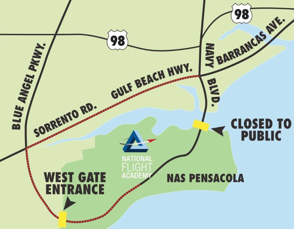 To get there, do not rely on GPS alone. You must enter by the West Gate Entrance off of Blue Angel Parkway, not the gate off of Navy Blvd. You will find the museum and practice field just past the West Gate.