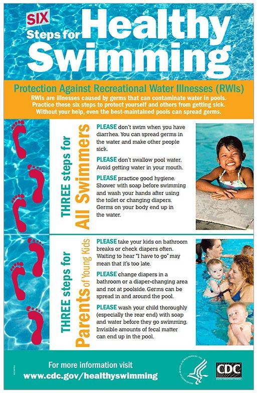 - Always shower/wash yourself and children before and after swimming and wash hands after using the restroom.