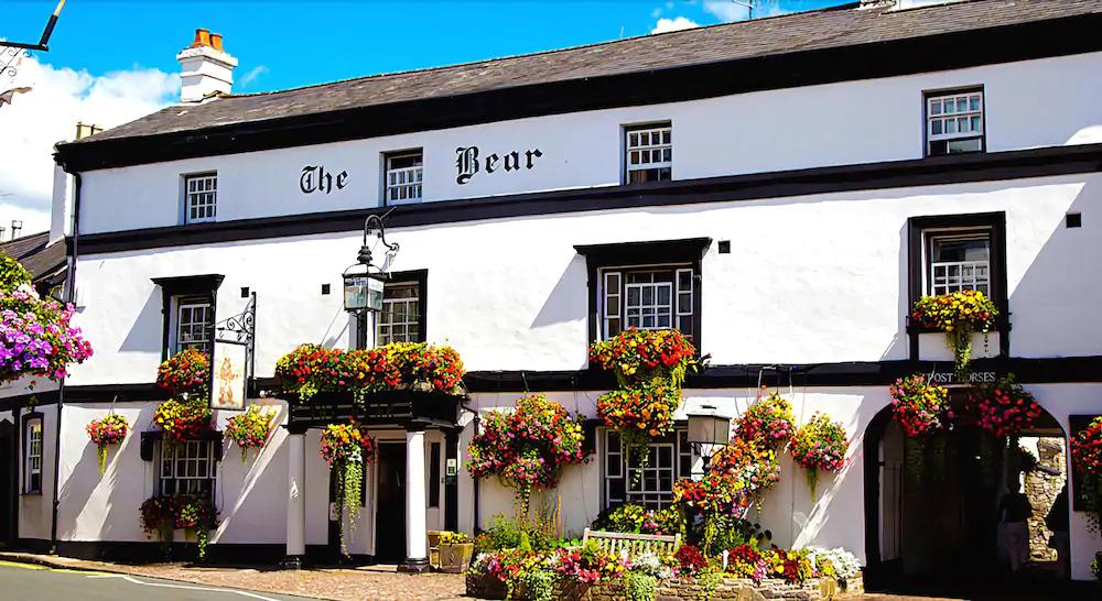 The Bear Hotel Crickhowell Brecon Beacons Wales is a traditional historic coaching inn dating from 1432.